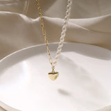 Elaborado con un toque moderno, esta hermosa pieza presenta una combinación de mitad perlas y mitad metal dorado, que culmina en un llamativo acabado de corazón dorado.